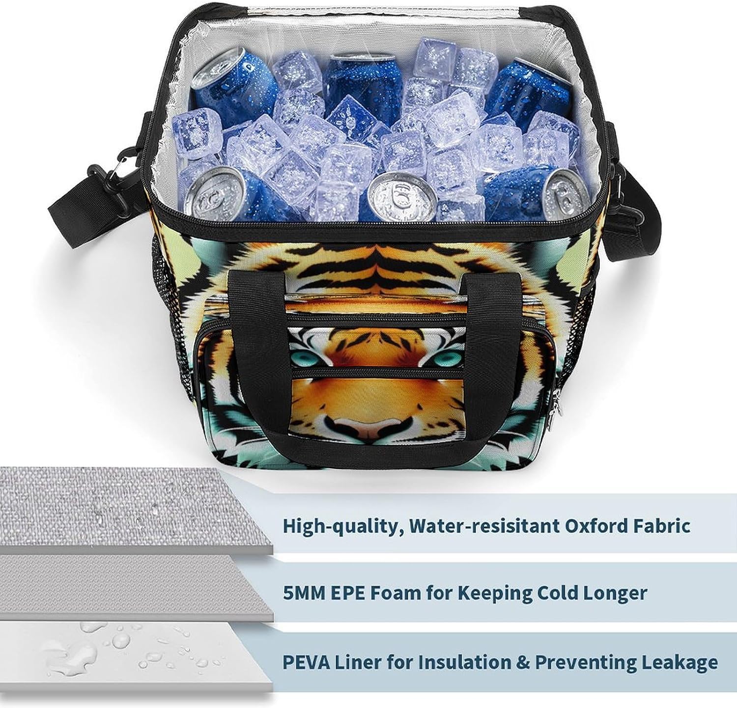 When you're looking for a reliable way to keep your food and drinks fresh while on the move, our Little Fat Tiger Head insulated cooler tote is the perfect solution. Made from high-density Oxford cloth with an upgraded aluminum foil lining, it offers superior insulation that maintains the temperature of your items for hours. The leakproof design ensures no messy spills, and the sturdy construction means it can handle the rigors of daily use, whether you're commuting to work or heading out for a weekend camping trip.The 22.5L large capacity provides ample space for all your essentials, from sandwiches and salads to cans of soda and bottles of water. The comfortable 66cm straps make it easy to carry, and the compact vertical design doesn't take up unnecessary space in your car or backpack. Whether you're packing a meal for the office, preparing for a family picnic, or stocking up on groceries, this cooler bag has you covered.Forget about flimsy coolers that fall apart after a few uses or fail to keep your food fresh. Our reusable cooler tote combines practicality, durability and style in one package. Its neutral design works for everyone, and its versatility makes it a must-have accessory for anyone with an active lifestyle. Invest in a cooler bag that meets all your needs and simplifies your on-the-go eating experience. Lightweight Cooler Bags Oxford Cloth Cooler Bags Ice Packs Reinforced Handle Ice Chest Cooler Bag Tote Cooler Bag Versatile Cooler Bags Portable Insulated Cooling Everyday Cooler