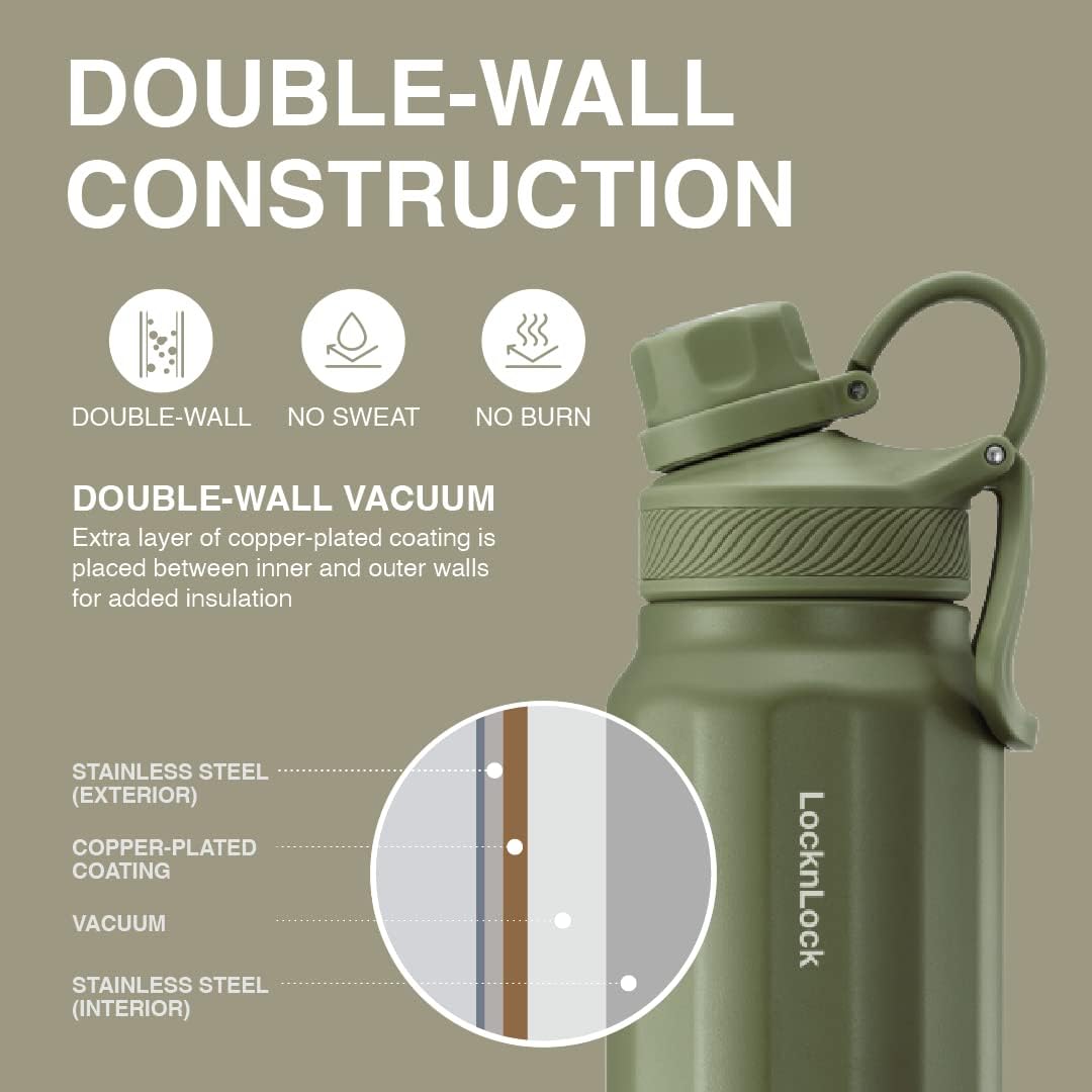 Stay hydrated on any adventure with this metal water bottle, designed to keep drinks at the right temperature for hours. Its double-wall vacuum insulation keeps cold drinks chilled for up to 38 hours and hot drinks warm for up to 12 hours, making it a great camping water bottle or sport bottle for long days outdoors. This secure twist top water bottle with lid features a silicone gasket that prevents leaks and spills. The hinged carry handle adds convenience, making this BPA free water bottle easy to grab during hikes, travel days, or gym sessions. Its angled body and textured powder-coated finish provide a firm, comfortable grip, even when your hands are wet or you're navigating uneven terrain. The wide opening allows fast refills and simple cleaning, which is ideal when switching between water, electrolytes, or hot drinks throughout the day. Built from durable 18/8 stainless steel, this insulated water bottle withstands bumps, drops, and rugged environments. Whether you're camping, biking, or working long shifts, it delivers reliable performance and everyday practicality in a tough, travel-ready design.