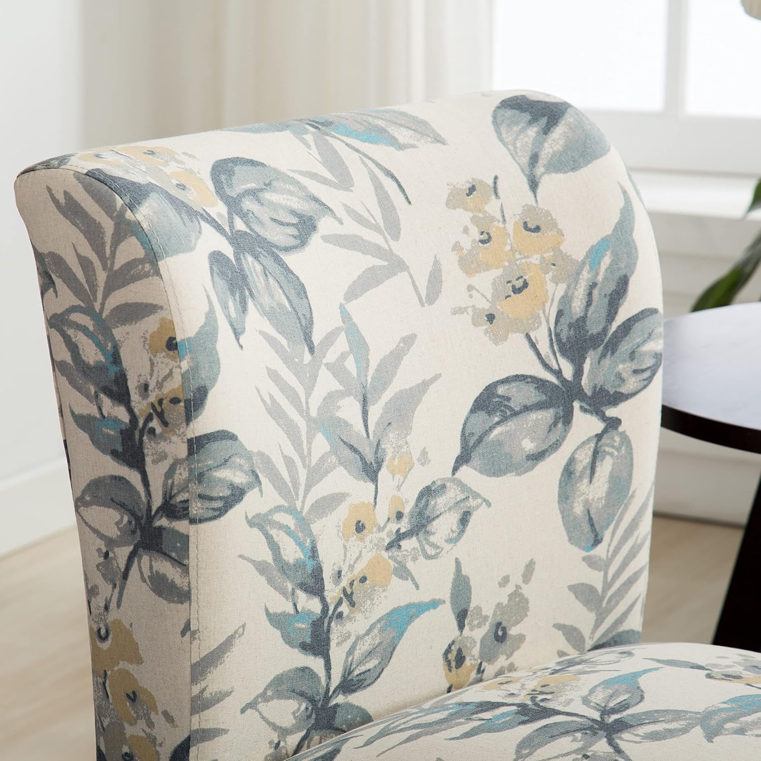 This Lomira Collection versatile accent chair will bring sophistication to any room, it combining contemporary lines and retro style in black finish. Armless designed. Curved back and solid construction creates just the right amount of vibrancy. This lovely Chair is available in a variety of colors: Vintage French Print, Chalkboard Art Shadow Print, Chalkboard Art Light Print, Green Leaves Print, Grid Print and Paisley Print. Its contemporary design along with its gorgeous pattern makes this chair a must-have in any home.