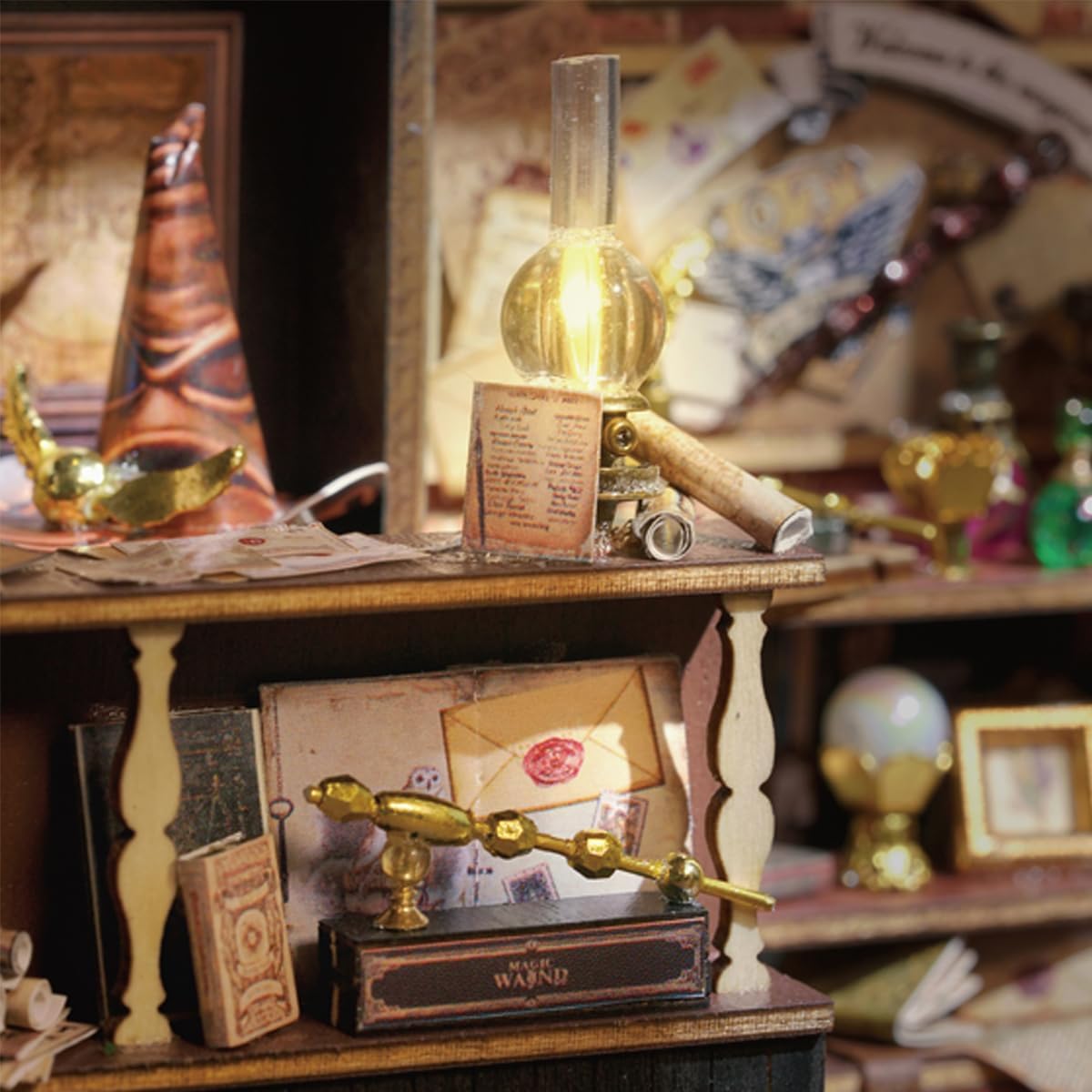 Specification Material: wood, fabric, paper, plastic, resin,LED lights etc. Finished size:28.5x13.9x14.5cm/11.22*5.47*5.71 inches. Assembly Time: 2-3 Days. usage:home decoration,lover gift. Warning 1.Please carefully read Instruction manual before use. 2.Please understand it may produce a little noise while you use it, but it is normal. 3.Please do not disassemble the battery. If it is installed incorrectly,it may explode. Package Includes All furniture shown on the picture 1*Dust proof. LED lights. 1*English Manual.
