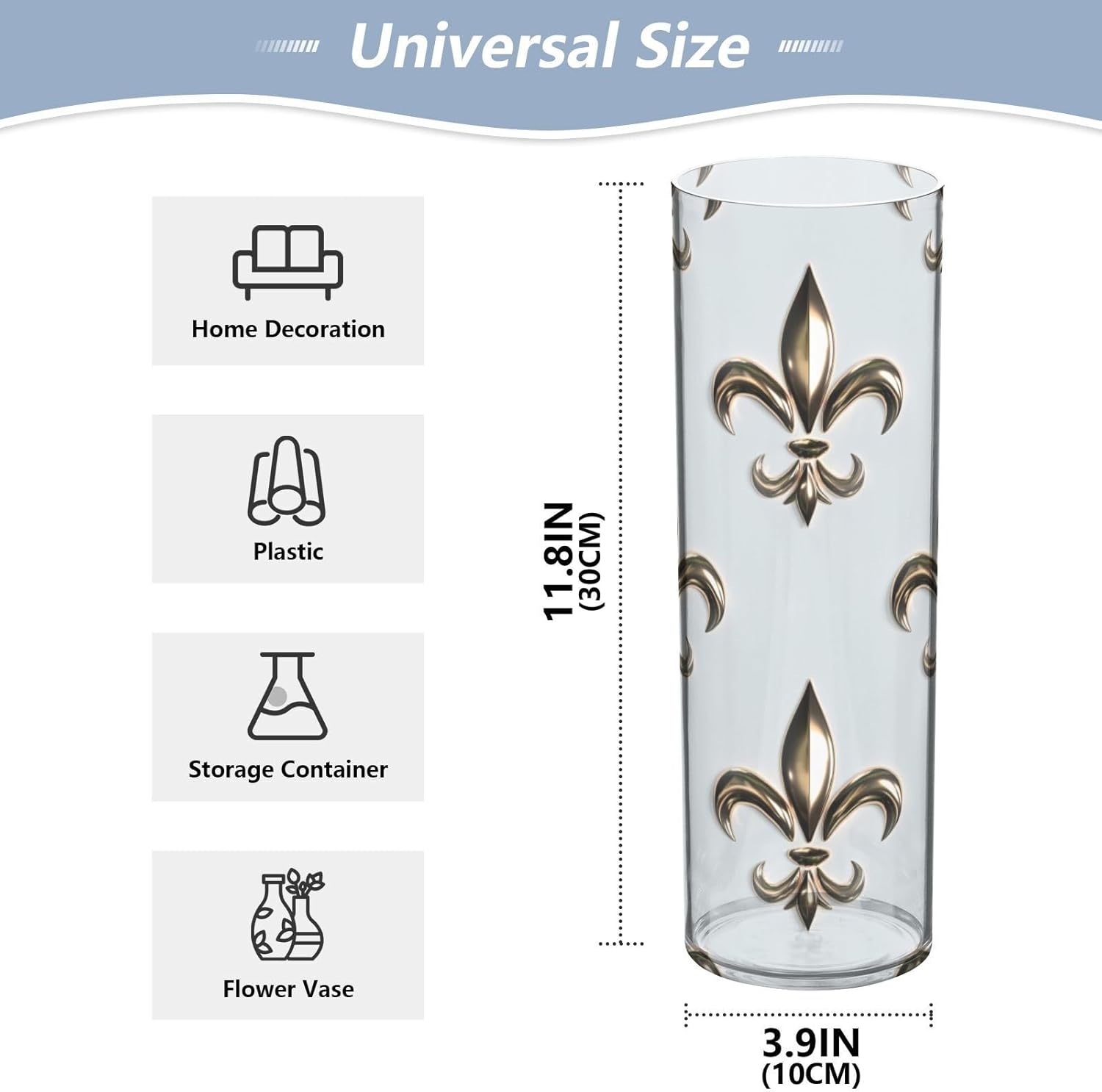 Yasala Flower Vase, Your Everyday Decor! 🌸 Package: cylinder vase × 1 🌸 Dimension: 11.8"(H) × 3.9"(D) / 30cm × 10cm 🌸 Thickness: 0.1" / 0.25 cm 🌸 Material: Plastic ✨ Versatile -- Bouquet vase, floating candle holder, plant container ✨ Chic -- Fun patterns and vibrant colors, modern and nice looking ✨ Tall Enough -- Useful for longer stemmed flower and palm leaves ✨ Stable -- Add some water or pebbles, you will get a sturdy vase ✨ Decor -- Wedding centerpiece, party decoration, date night romance ✨ Home Daily -- Living room table, kitchen countertop, hallway tabletop 🌸 Holiday Present and birthday gift for your family and friends: 4th of July, Halloween, Thanksgiving, Christmas, Xmas Eve, New Year Valentine's Day, Easter, St. Patrick's Day, Mardi Gras, Mother's Day, Father's Day