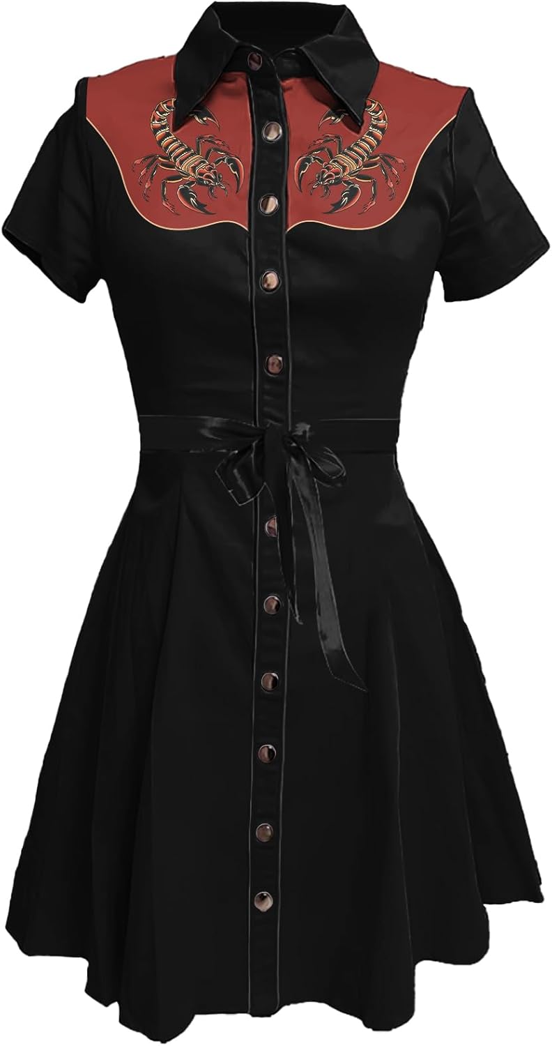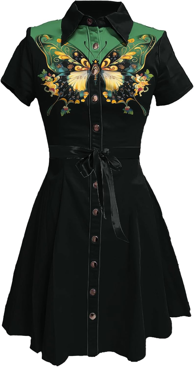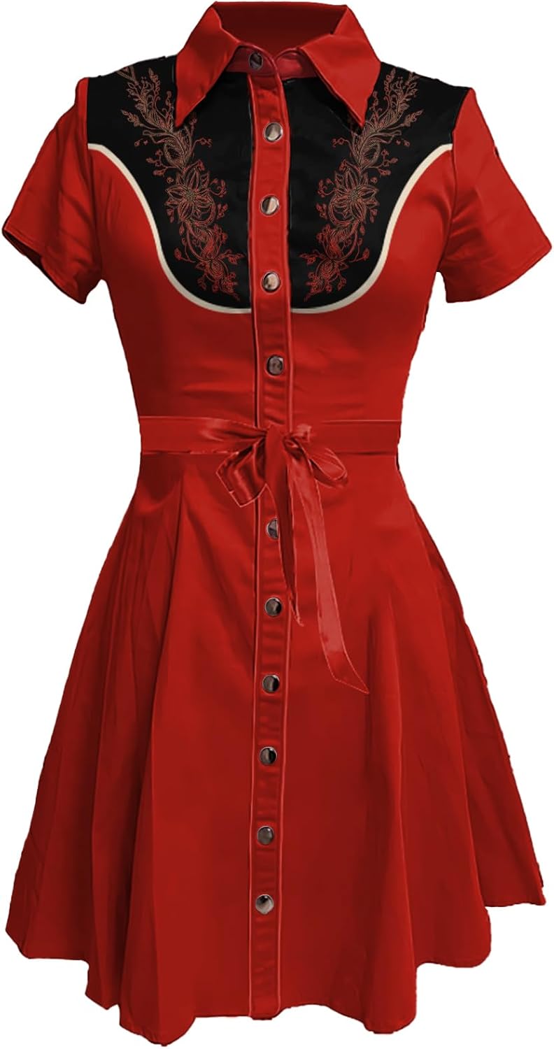 MARSVOVO Vintage Western Flower Printed Shirt Dress Women Summer Button Down Casual Retro Cowgirl Style Midi Dresses