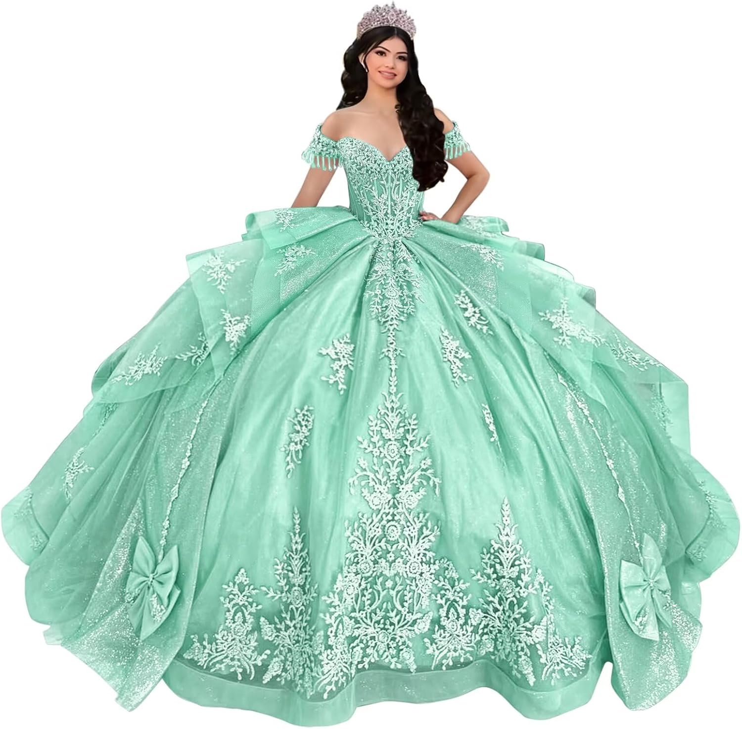 | Embellishment Feature | Lace,Tulle,it is a pretty quinceañera dress |