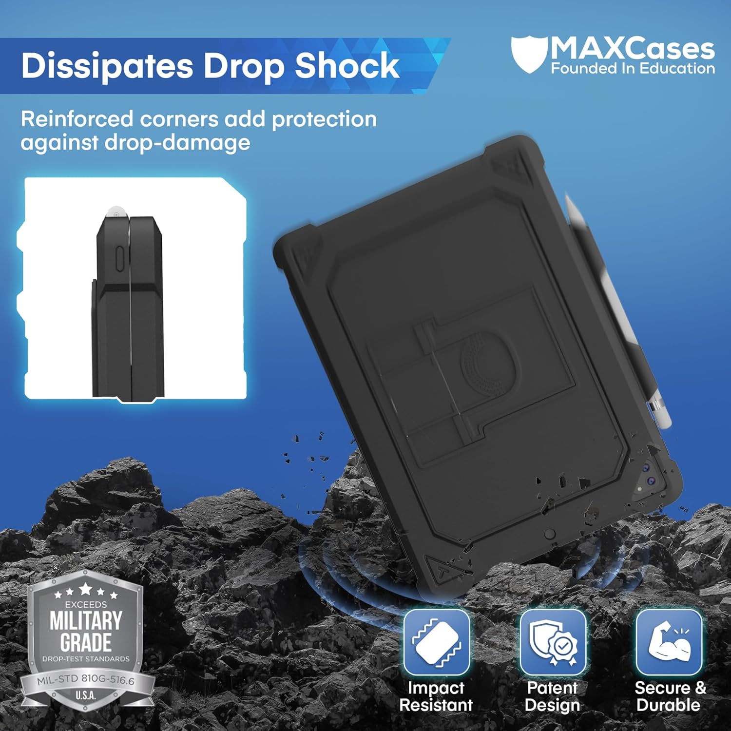 The MAXCases Extreme KeyCase-T with Smart Connector & Trackpad is a rugged, all-in-one keyboard case designed for iPad Pro 11-inch (5th Gen) users seeking durability, seamless connectivity, and enhanced functionality. This protective case allows users to choose between typing, touchscreen, or trackpad navigation, making it ideal for work, school, and daily use. The rugged TPU bumper surrounds both the iPad and keyboard, offering shock-absorbing protection against drops, scratches, and daily wear. The integrated, non-detachable keyboard ensures that both the keyboard and stylus remain securely in place, reducing the risk of misplacement. Tamper-proof keys add extra security, making this case ideal for classroom and professional use. Designed for spill resistance, the water-resistant keyboard features built-in drainage channels that quickly redirect liquid, helping protect the device in case of spills. The Smart Connector technology eliminates the need for charging or Bluetooth pairing—simply attach the iPad for an instant connection. The built-in kickstand locks securely for a stable typing and viewing experience, while the custom-fit design ensures full access to the camera, ports, and buttons. The case is made from smooth, easy-to-clean materials, making it ideal for shared environments such as classrooms and offices. For added functionality, the backlit keyboard provides visibility in low-light settings, ensuring an efficient typing experience. The integrated trackpad offers precise cursor control, giving users a laptop-like experience when needed. Meeting CAASPP/ELPAC testing requirements, the MAXCases Extreme KeyCase-T is a protective, high-performance keyboard case that seamlessly integrates with the iPad Pro 11-inch (5th Gen). Perfect for students, educators, and professionals, this case delivers protection, convenience, and enhanced usability for any environment.