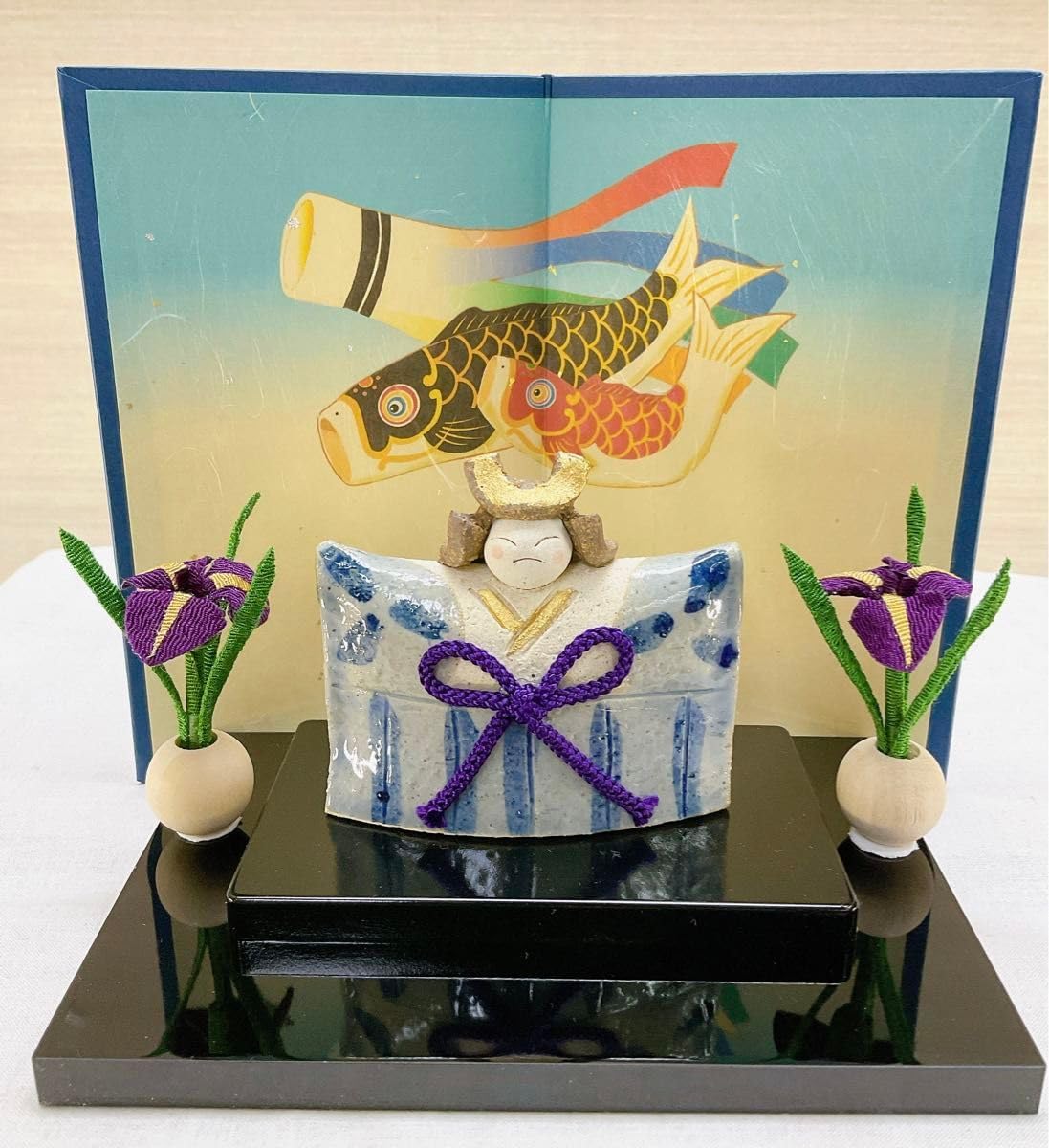 May Doll Black Painting Table & Koinobori Windshield, Height 5.9 inches (15 cm) & Pair of Flower Fascina, Children's Day & Afternoon Festival, May Display, Entrance Item