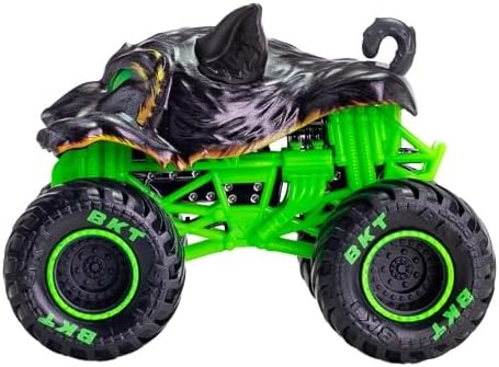 Celebrate Halloween with this Monster Jam Limited Edition Black Cat Truck! Inspired by the eerie legend of Raven’s Hollow, this exclusive 2022 release features glowing green accents, a fierce black cat design, and collectible “Happy Halloween” packaging. Built by Spin Master with authentic Monster Jam details, oversized BKT tires, and a die-cast body, this 1:64 scale truck is ready for thrilling stunts, racing, and display. Don’t miss your chance to own this spooky collectible before it disappears into the shadows!