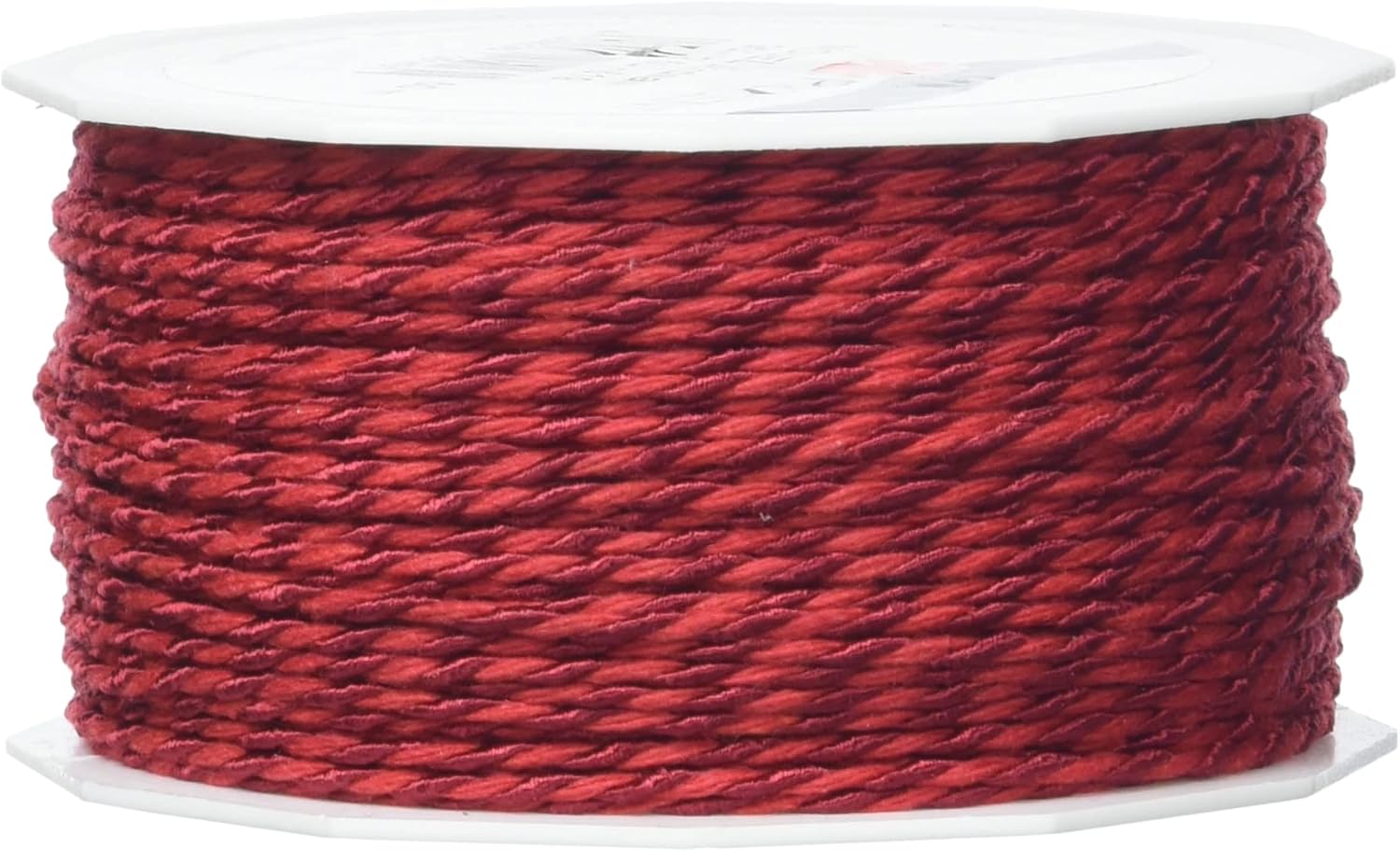 Dainty, bold colored cord on non-rolling spools. Perfect for your craft room! , 1/16 inch by 55 yards in color burgundy. This cord, soft and colorful, is perfect for packaging elements, gift wrapping, wedding, parties, jewelry making and all crafting projects!. twisted edges Morex part number 43602/50-619. This product is made from 100% Polyester fabric. Made in Germany. Morex Ribbon is an importer and manufacturer of decorative ribbon, offering a large variety of creative, fashion-forward and fine European designed ribbon.