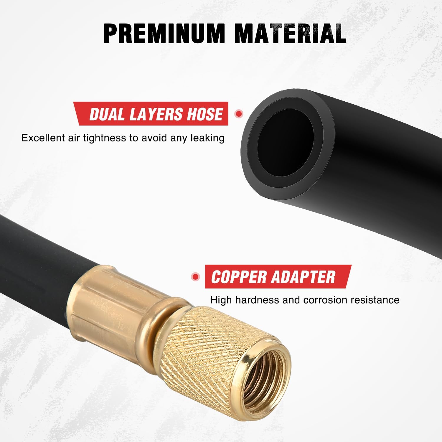 • Accurate Reading: with a dual-color coded scale for readings range between 0-100psi (0-7bar), easy to read and provide you more precise and accurate readings. It's crucial to note the absence of a pressure relief valve and drain hose. Safely relieve pressure by encasing the hose connection in a cloth before detaching