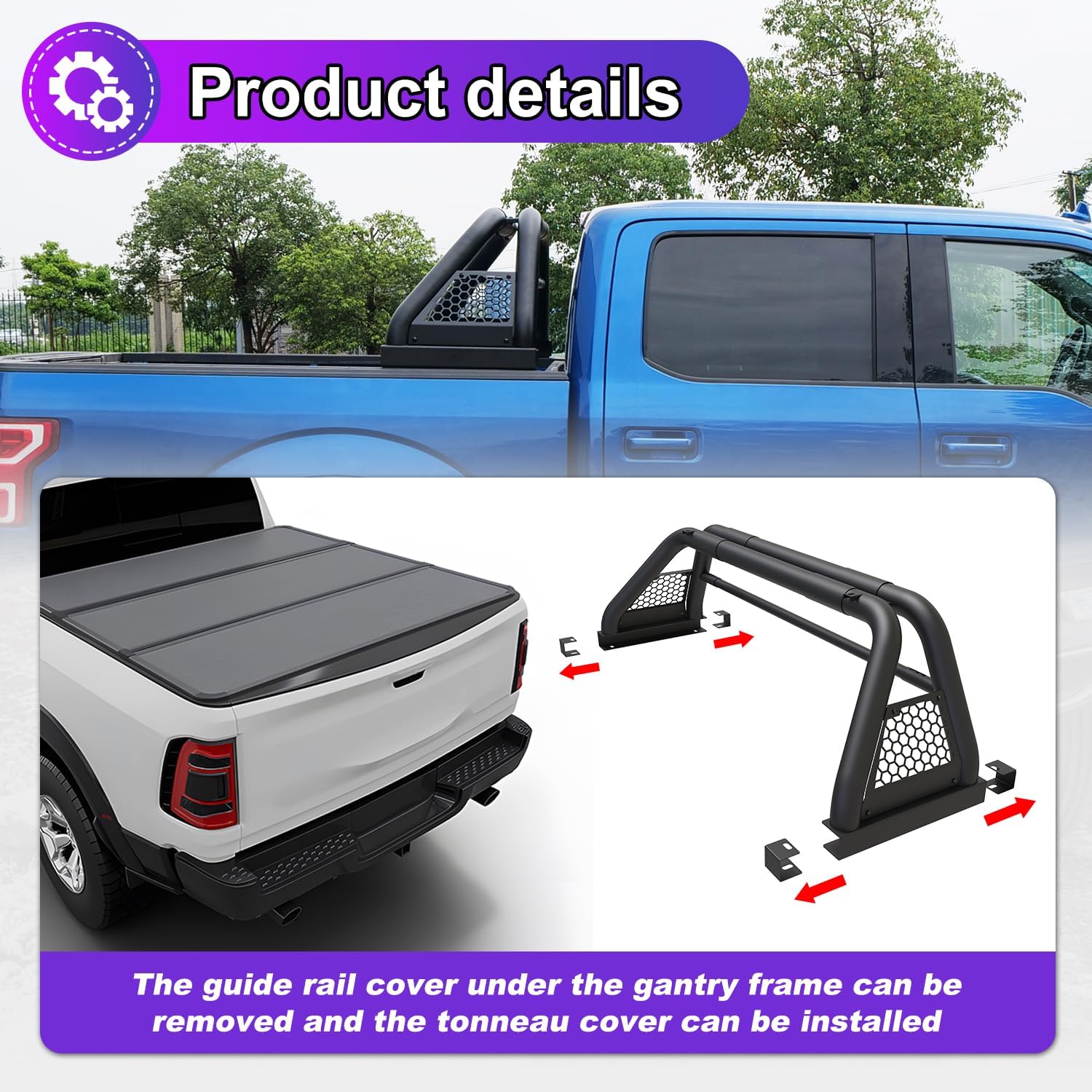 Model Adaptation:Roll bar fit most full sizes pickup trucksalso suitable trucks with bed coversPlease make sure the roll bar size fits your truck width size.Roll bar adjustable width 62.9-74.7 inches.For Dodge Ram 1500/2500/3500 1994-2010;For RAM 1500/2500/3500 2011-2026 (Not compatible for models with RamBox);For Chevy silverado/GMC sierra 1500/2500HD/3500HD 1999-2026;For Ford F-150 1997-2026;For Ford F-250/350 Super Duty 2017-2026;For Toyota Tundra 2000-2021;For Nissan Titan/Titan XD 2004-2026Main Specification:Material : Q235A SteelWeight : 61.7 LBExterior Finish: Textured BlackPackage: 1x Roll bar and All Mounting AccessoriesHassle-free After-sales Service:Warehouses: All the products we sell are stored in US warehouse.Guarantee: For incompatibility, or unusable due to defects, we provide 30-day refund or replacement; For product malfunction, we provide 12-month limited warranty.About US~ NIXON OFFROAD ~ Professional Automotive Accessory Manufacturer and Seller.We has huge strength and scale factory, specializing in the production and design of automotive lamps.Our main categories are headlights, taillights, fog lights, hubcaps and exterior accessories.We are willing to provide better products and the most satisfactory service to customers from all over the world!
