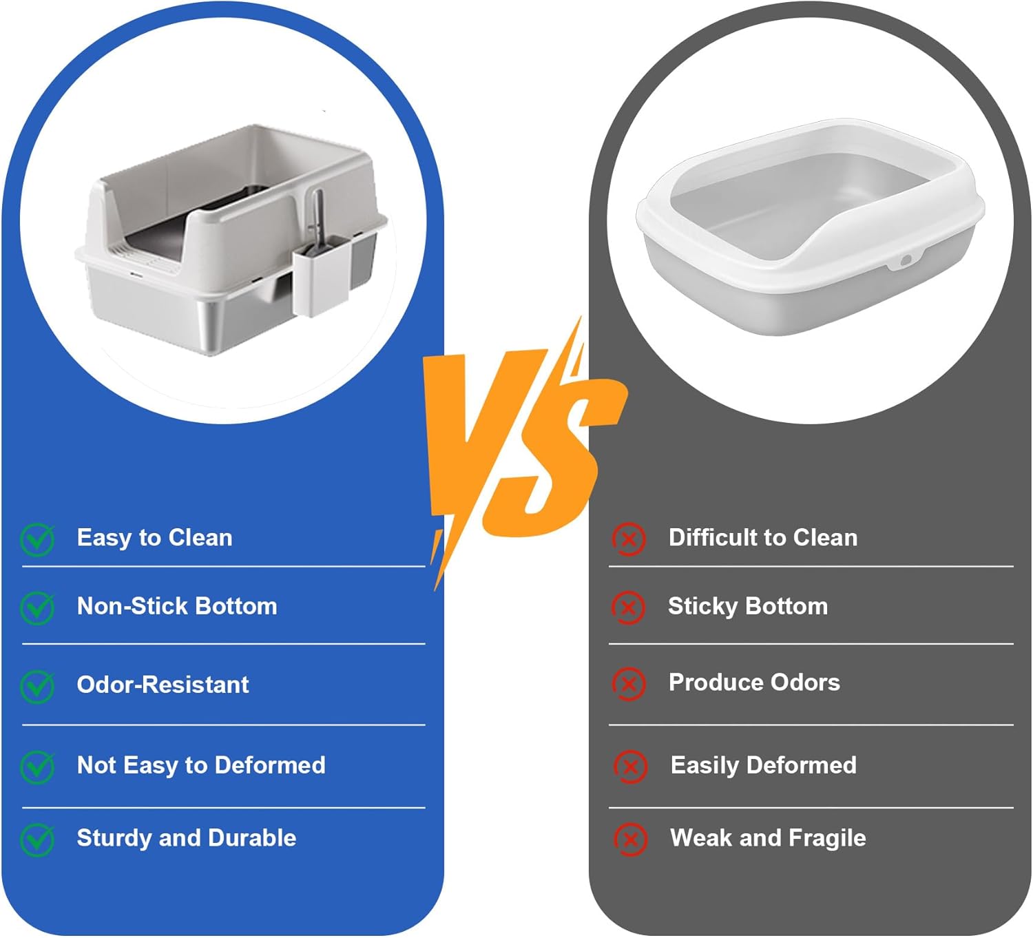 Product Name: Cat Litter Box SetColor: Black, Light Grey, WhiteMaterial: Stainless steel+PPExpand size: 60 x 40 x 35.5 cm, 60 x 40 x 30.5 cmPets: Small, Medium, Large CatsPacking list:Cat Litter Box x 1PP Fence x 1Cat Litter Mat x 1Cat Litter Scoop x 1