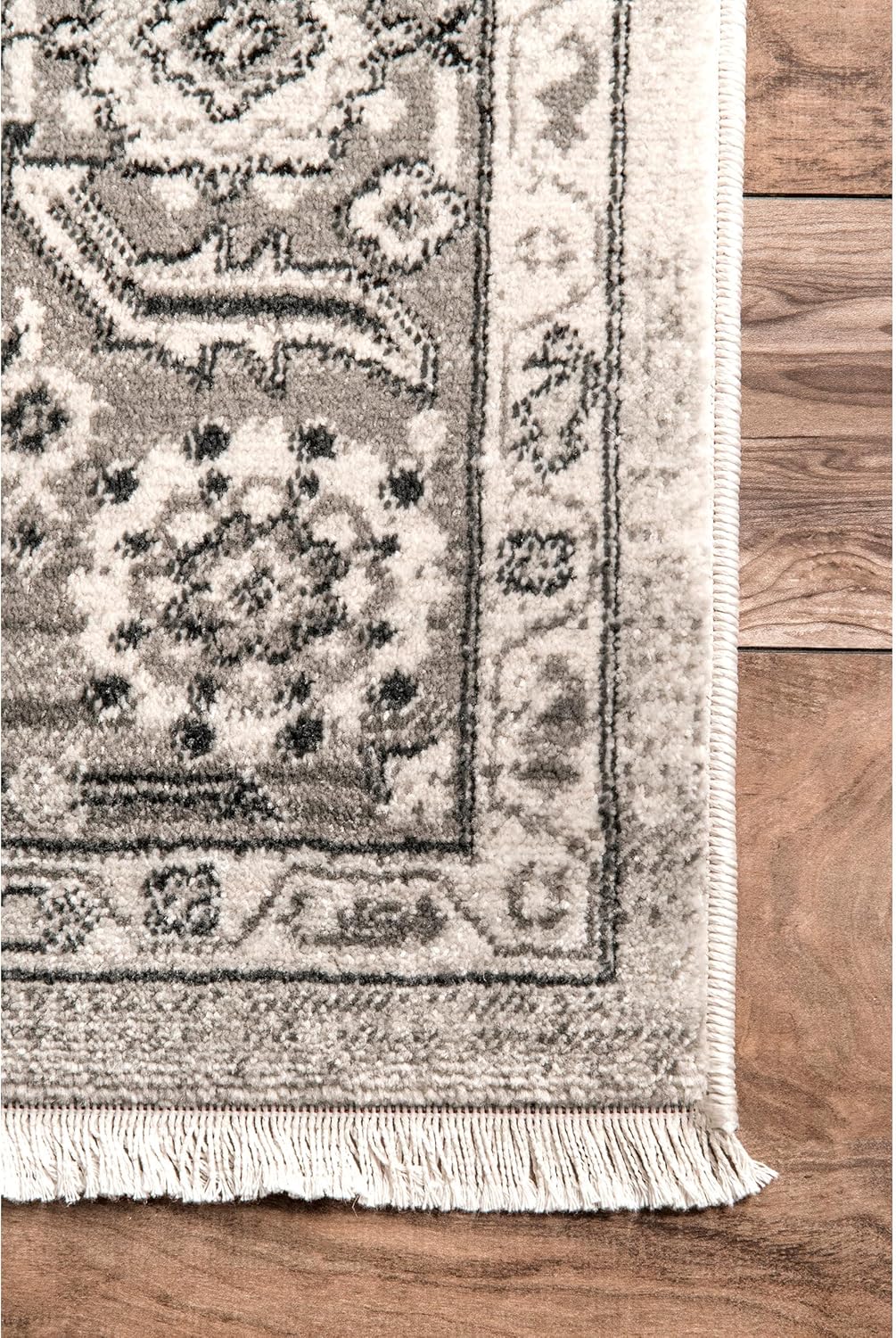 A traditional design that has the feel of an heirloom piece. Machine-made in Turkey from polypropylene, a soft but strong fiber that is stain resistant. This rug is finished on both ends with a short fringe.