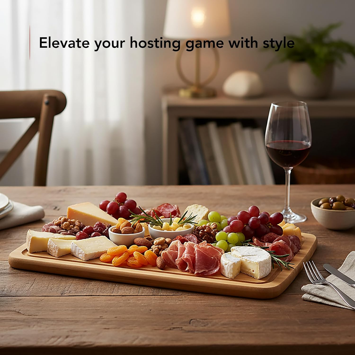 Elevate your dining experience with the OVENTE Charcuterie Board B011713B — a practical and visually appealing serving solution designed to make hosting effortless and elegant. The sealed lid keeps your creations as flawless as the moment you made them, allowing you to prepare at your pace and entertain in style. Measuring 16.5" x 12.6", this bamboo serving tray is the perfect centerpiece for any occasion from quiet nights in to grand celebrations. The portable handle on the transparent lid makes it easy to carry anywhere with confidence, while sealing strips and a four-buckle design keep your food secure during transport, maintaining freshness every time. Perfect for family gatherings, potlucks, outdoor picnics, beach parties, or snacks at work, this versatile board is more than just a serving platter — it adds elegance to any event. This stylish covered cheese board enhances your entertaining experience and makes a thoughtful gift for weddings, housewarmings, new homes, Christmas or other special celebrations. Serve a delightful mix of fresh grapes, blueberries, artisan bread, savory ham, assorted cookies and chocolates, all beautifully displayed under the transparent lid. Keep the freshness in and the compliments coming with the OVENTE Charcuterie Board B011713B!