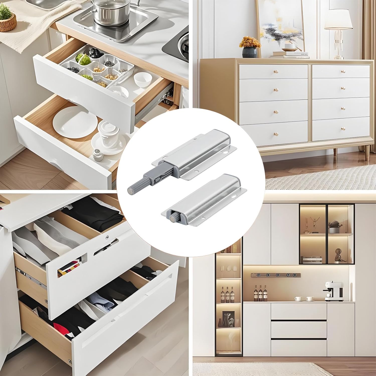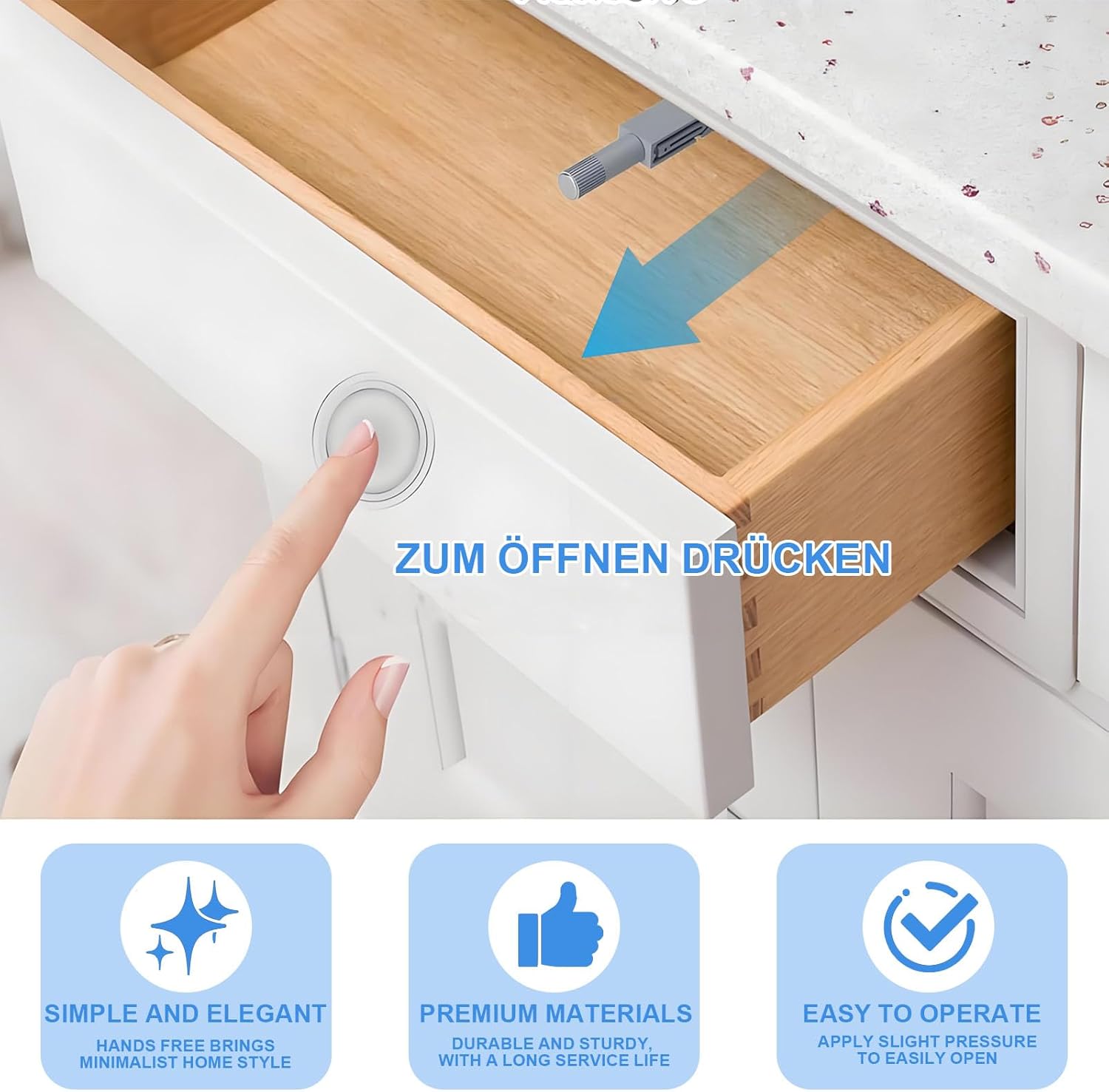 Name: push to open door opener material: aluminium Packing list: 6 pieces push to open door opener. Warm tips: The dimensions are measured manually, please allow slight errors. The colour may vary slightly from the online image due to the colour settings of your monitor. Please refer to the actual product.