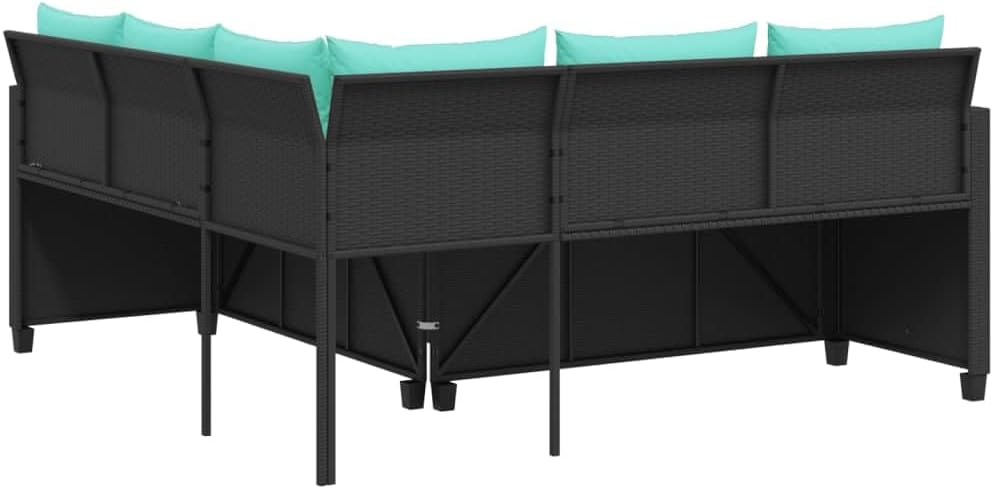 Furniture / Outdoor Furniture / Outdoor Furniture SetsThis L-Shaped Patio Sofa is the perfect mix of style and comfort, designed to elevate your outdoor space to a cool, inviting lounge. With its sleek lines and posh color scheme, it fits right into gardens, patios, or balconies, giving you a fab spot for relaxing or having a laugh with friends.【Spacious Design】 The sofa’s ample layout provides comfy seating for up to five guests, making it perfect for entertaining friends or family. Enjoy relaxed chats while chilling on the soft cushions.【Premium Materials】 Built from UV-resistant synthetic rattan, this sofa is made to brave the elements without fading away, ensuring long-term use. The powder-coated metal frame adds strength and stability.【Functional Elegance】 The tempered glass table not only looks smart but also offers a handy surface for drinks, snacks, or decorations, boosting your outdoor experience.【Easy to Clean】 With removable cushion covers featuring zippers, keeping the sofa looking fresh is a breeze. Just take off the covers and wash them whenever needed.【Chic Decoration】 With its sleek style and classy colors of black and blue, this L-shaped sofa isn't just furniture; it's a statement piece. Great for any outdoor decor theme, it adds a touch of luxury to your space.Colour: Black Material: Synthetic Poly RattanFinish: Powder-Coated Indoor/Outdoor: Outdoor OnlyCover Included: NoHeadboard Included: NoCapacity: 242.5 lb per seatMaximum Number of People: 5Maximum Weight: 242.5 kgDimensions: 68.9 x 68.9 x 29.5 cm (W x L x H)Surface Height: 1 cmLeg Height: 2 cmWeight: 28 kgSeat Depth: 52.1 cmSeating Capacity: 5Swings: NoLadder: NoDelivery Contains: 1 x Garden tableAssembly Required: YesRecommended Number of People for Assembly: 2