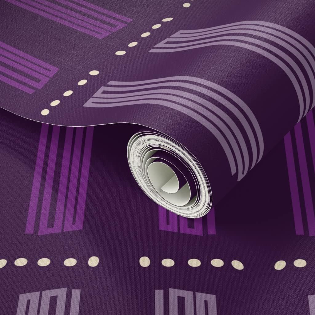 Peel & Stick Wallpaper 3ft x 2ft - Vibrant Purple Royal Dots Stripes African Tribal Custom Removable Wallpaper by Spoonflower