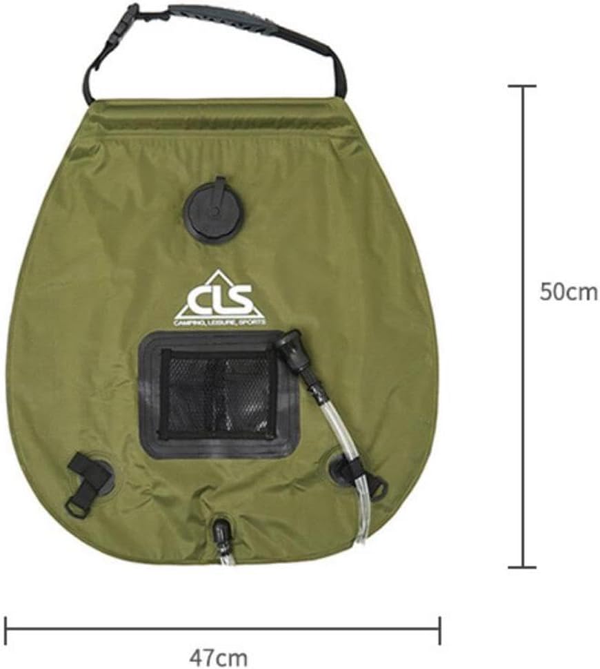 Description: - Solar shower bag is made by environmental friendly materials, safe to human health, lightweight,durable and - Large capacity, can easily carry up to 5 GALLONS (20Liters) water for showering or cleaning at remote areas - The SMART PVC material can efficiently absorb the solar energy to up the water inside the bag. It heats water to 113¡ãF (45¡ãC) in 3 hours with direct sunlight. - There is a temperature indicator (¡ãC/¡ãF) attached onto the bag, no more guessing on water temperature - Convenient to use and operate, just pull out the accessories, and pour into about 80% water, then close the top cover, Screw the shower head on and off to control water . - Suitable for outdoor camping, hiking, backpacking, travel, picnic, beach, garden, backyard, swimming, water sports, or home use - for outdoor shower and pet cleaning and car showeringSpecification: - Material: PVC Material - Lenth: 48cm/18.9 inch - Width: 47cm/18.5 inch - Narrow Width: 31cm/12.2 inch - Conduit Lenth: 49cm/19.3 inch - Capacity: Approx. 20LPackage Includes:1 Piece Camping Shower Bag:Please allow slight size deviation and color difference.