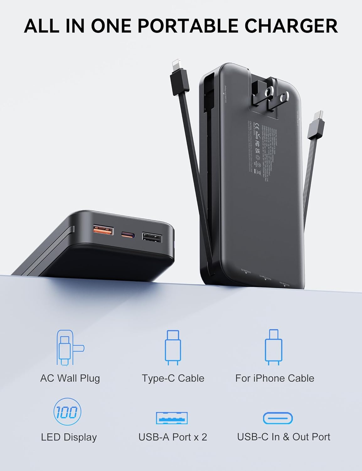 | BuiltIn Media | 1x 20000mAh potable charger, 1x Type-C charge cable, 1x user manual |