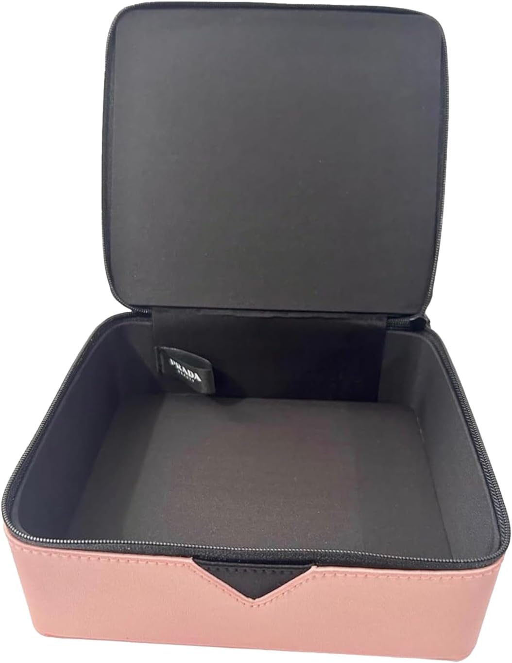 Prada Black Pink Train Case Beauty Fragrance Cosmetic Pouch Makeup Bag (EMPTY MAKEUP BAG) - Approx 5.5L x 5.5H x 2.5W - 6420