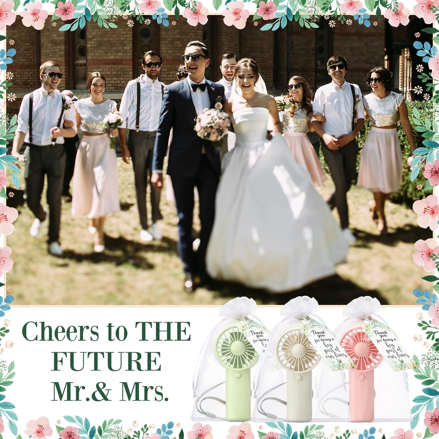 | Included Components | 50 x Mini handheld fans in 3 colors (green, pink, white) |