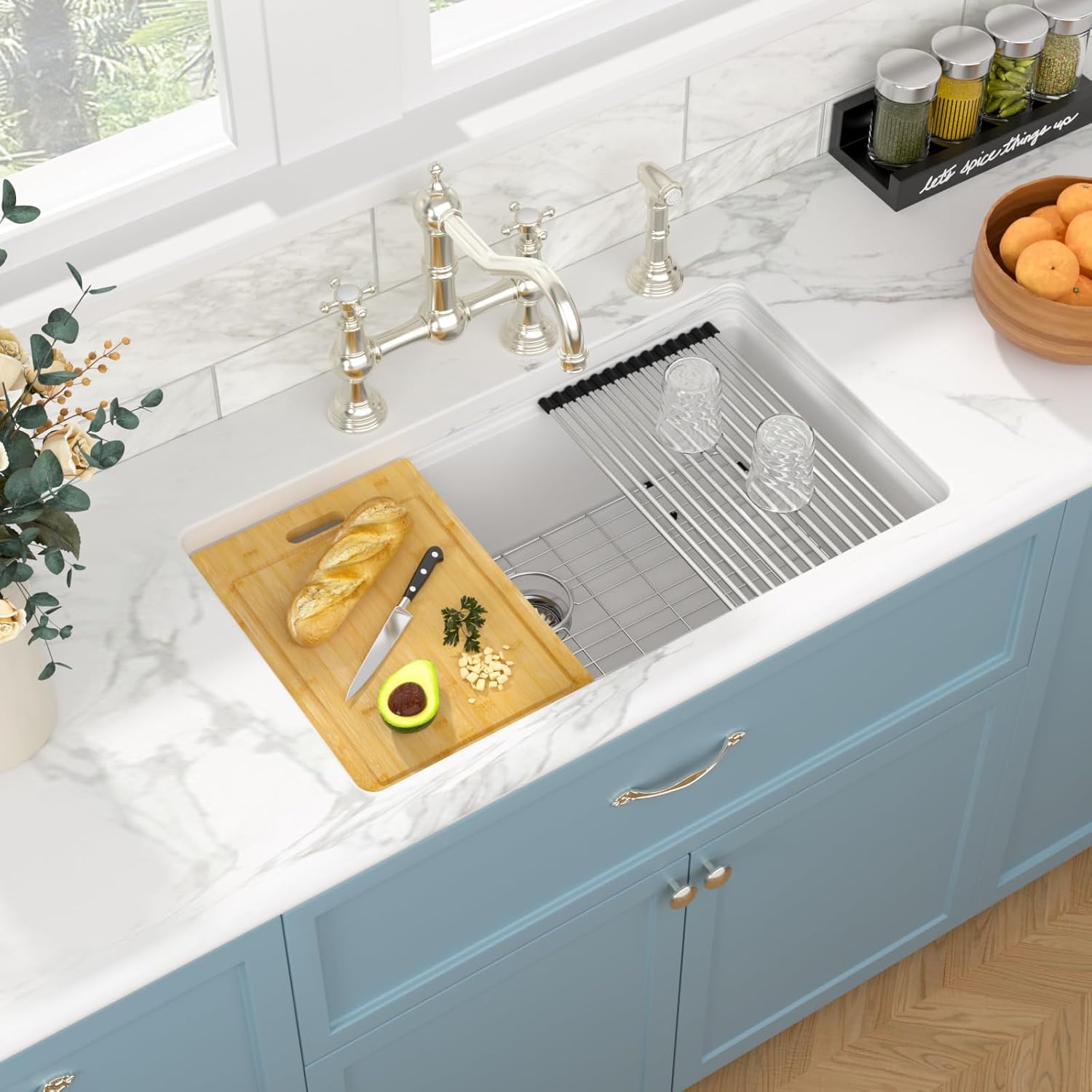 | Included Components | Strainer, bottome grid, cutting board, installation accessories, roll-up rack |