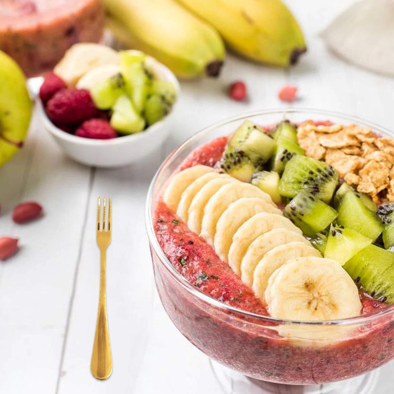 STAINLESS STEEL- Our Stainless steel spoons and forks are shiny, thick metal, not cheap or bendable, ergonomics handle, durable. SIZE- Our spoon is 4 inches in length, 0.8 inches in width, perfectly sized for espresso or Turkish tea cups, comfortable to handle. The fork is tiny size with 4.8 inches in length and 0.5 inches in width. WIDE APPLICATION- Perfect and elegant to use for coffee, dessert, yogurt, ice cream, soft boiled eggs, appetizers etc. These small spoons would also be great for serving dips, condiments, sugar, and toddlers. PACKAGE INCLUDES- There are 8 pieces spoons and 8 pieces forks in the package. QUALITY GUARANTEE- Quality guarantee, Life time warranty. Best gifts for family members and friends. Product Description: small spoons & forks which are very cute, sturdy, easy to clean, classy and unique. Great for daily use,you can use it for tea, coffee, or dessert, ice cream etc. Product Specifications: Color: Gold Material: Stainless Steel Size: 4 x 0.8 inches/ 10 x 2cm (Spoon), 4.8 x 0.5 inches/ 12.2 x 1.3cm (Fork) Package Includes: - 8 x Spoon - 8 x Fork