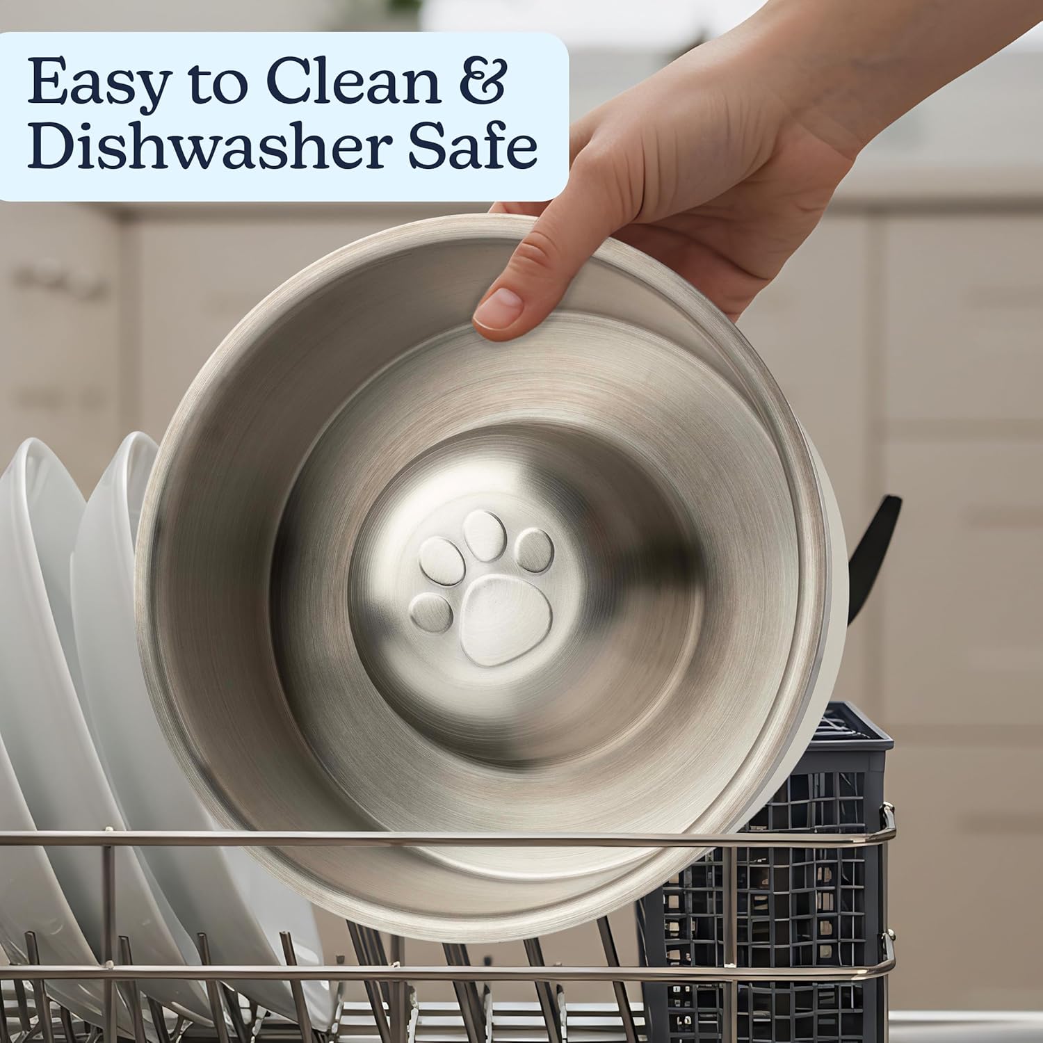 The Set of 2 Large Slow Feeder Dog Bowls Stainless Steel by PETMAKER offers a safe, reliable and no mess feeding option for every pet owner. Made of high-quality materials, these long-lasting dog bowls slow feeder encourages your medium to large dog or puppy to engage in slower eating habits, which promotes healthy digestion and prevents bloating. Each dog dish is made of 304 stainless steel designed to be incredibly durable and corrosion resistant for long-lasting use, uses food-grade materials that are safe for pets, and has an outside powder coated finish to withstand indoor and outdoor use. The stainless steel dog bowls large also feature double walled insulation to keep your pet’s food and water warmer or colder for longer periods of time. These stainless dog bowls come equipped with a non-slip rubberized bottom to prevent the dog water bowls from sliding to avoid spills and messes.