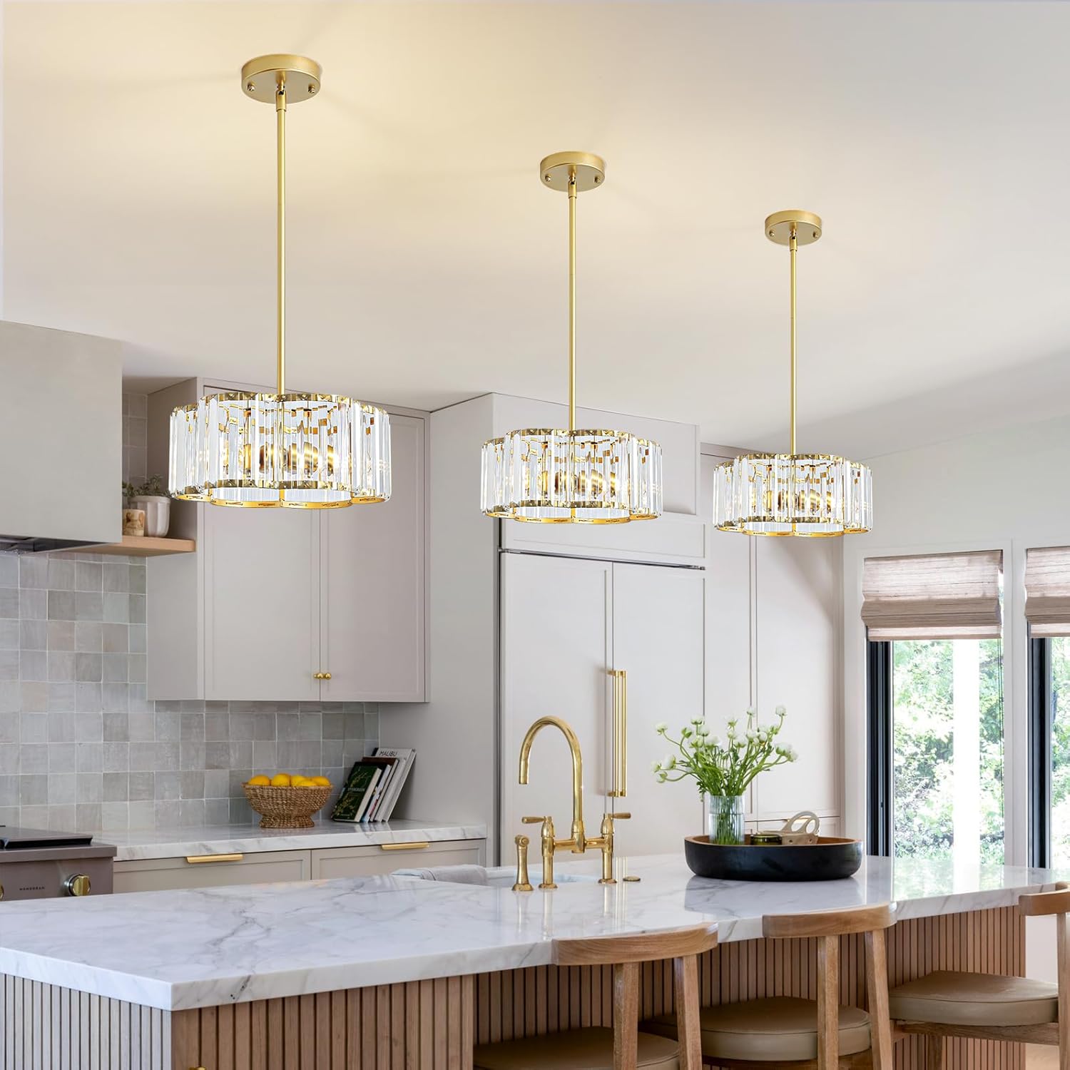 This beautiful semi-flush mount light fixture will complement several design styles from traditional to modern. The gold framing and translucent reflective glass panels makes it easy to match with virtually anything, and gives the look of a high-end, luxury chandelier style at an affordable price. This style works equally well as a standalone unit in a hallway or small room (i.e. closet or laundry room) or in a grouping of two or more above a kitchen island or breakfast bar. In my opinion, it would be too small to serve as a single light in a larger room like a bedroom, though everyone is different. It’s a huge upgrade from the frosted glass bo*b lights used in most builder basic homes. The adjustable telescoping length pole mount allows this fixture to be used as either a semi-flush mount or a longer pendant, depending on your ceiling height, room layout, and preferred style. This light fixture accommodates 3 lightbulbs, which means you can really flood a small area with artificial light if you want to, although there’s always the option to use lower wattage lightbulbs or a dimmer switch if you prefer a dimmer ambience. I also appreciate that the lightbulbs are changeable, rather than built-in, since this allows the end-user maximum flexibility in choice of wattage, lumens, CRI, Kelvin, temperature, flicker, or circadian rhythm alignment. Additionally, it allows for the lightbulb to be changed at the end of its usable life, so that the fixture itself does not also have to be discarded at this point. Lighting is an easy way to enhance the ambience of a space to better suit your design style and really express your particular taste without a lot of effort or