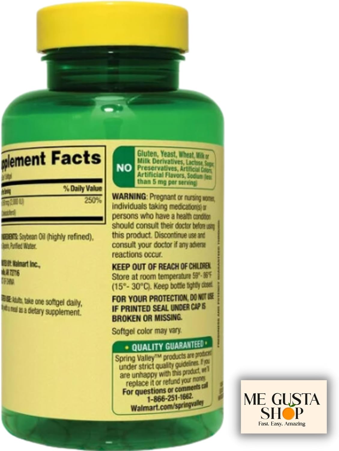 Spring Valley Vitamin D Supplement Softgels, 50 Mcg (2,000 IU), 400 Count + Me Gusta Sticker