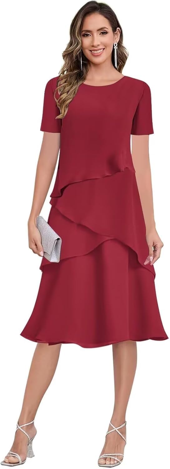 Product Details: Fabric: Chiffon Silhouette: A Line Hemline: Tea Length Closure: Zipper