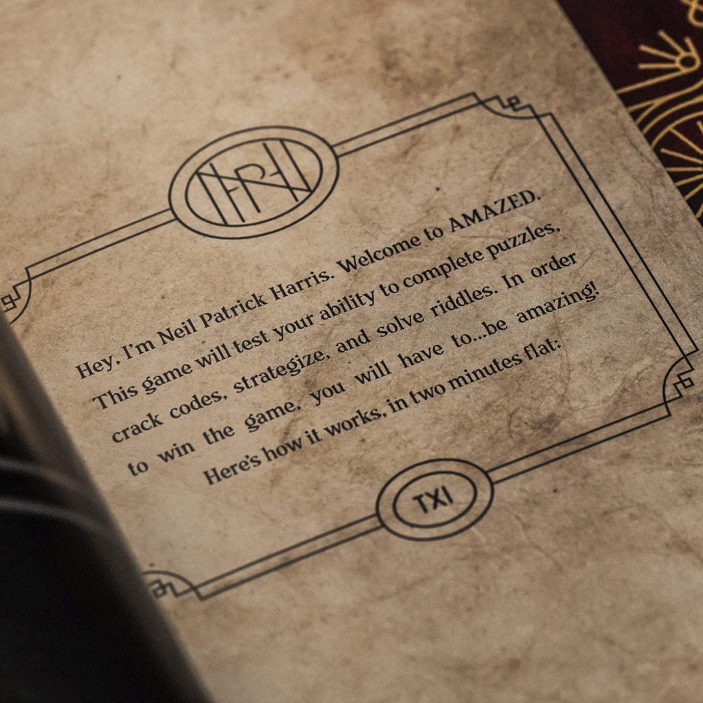A mind-blowing game of puzzles, riddles, secrets, and strategy. Presented by Neil Patrick Harris. Get ready to be AMAZED with an intense, mind-warping game of puzzles, riddles, and strategy presented by Neil Patrick Harris. Solve puzzles, riddles, and secret codes to PROVE your wits - on a brilliant maze-like game board that opens 16 different ways! Includes 300 challenge cards for hours of gaming. Get ready to be AMAZED.