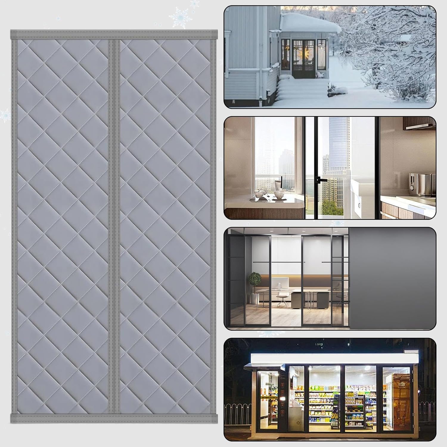 Insulated Door Curtains provide an effective solution for maintaining warmth during winter while ensuring your home stays comfortable and energy-efficient. Designed with windproof properties, these door coverings block cold drafts and reduce heat loss, making them ideal for patios, doorways, and porches in apartments or outdoor spaces. The magnetic feature ensures self-closing functionality, offering convenience and ease of use as the covering automatically seals after passage. These insulated door coverings are versatile additions to any room, enhancing insulation and privacy without compromising style. Whether used in a home doorway or an outdoor entrance, they deliver reliable performance and adaptability for various settings, keeping your living areas warm and protected against harsh weather conditions.SpecificationProduct name: Thermal Door CurtainsProduct size: about 100x210cm/39.37x82.68 inchesMaterial: Oxford cloth + cottonWeight: 1505gList1* Thermal Door CurtainsNote:1. Due to lighting effects and display angles, there may be color differences in the product.2. Due to manual measurement, there may be errors in product size, please understand.