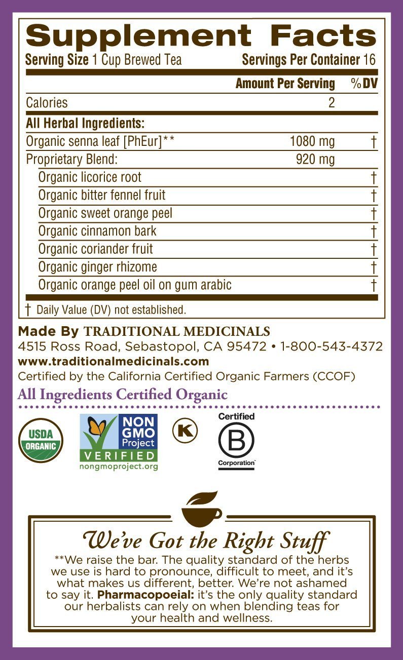 This tea, features senna, a laxative herb sourced primarily from family farmers in India’s Thar Desert, and an aromatic chamomile flower for relaxation and extra digestive support.