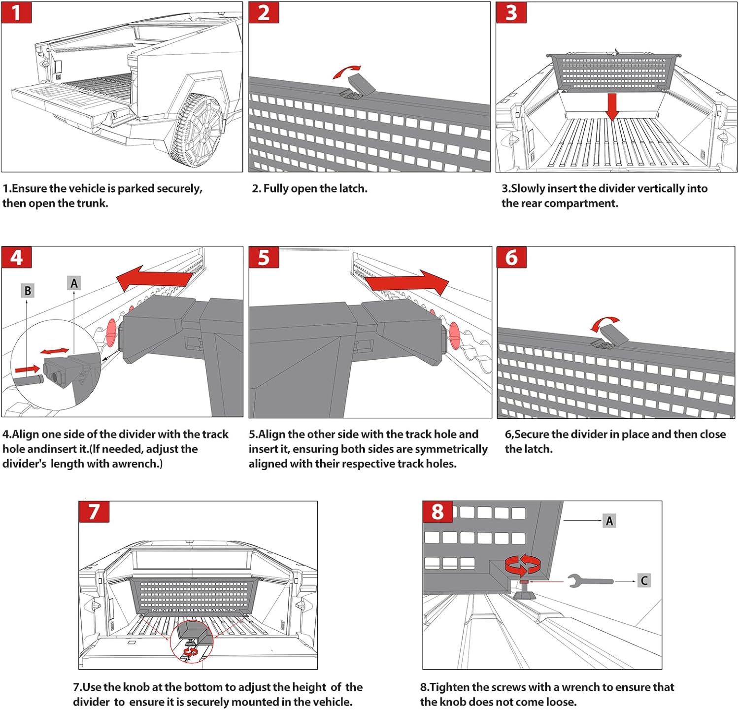 | Included Components | 8* Hooks, Rear Trunk Bed Divider |