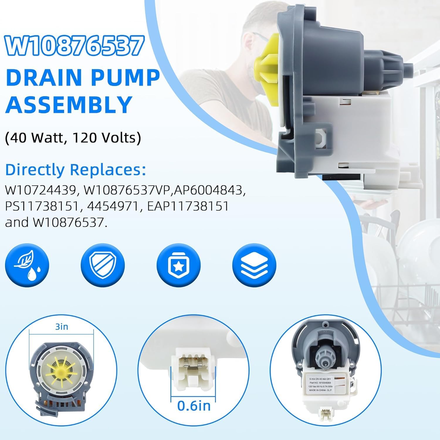 | Product Style | Easy to install, Replacing the W10724439 dishwasher drain pump is an easy task. You can find more detailed installation steps for W10876537 on YouTube, follow the video steps to complete the installation, which really saves you time and money! |