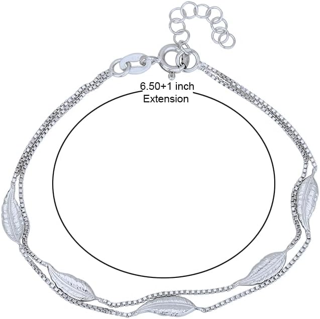 Crafted in 925 Sterling Silver, this stylish double layered bracelet showcases in-line feather charms that makes it perfect to wear for any special occasion. This Rhodium plated two row bracelet is a fashionable way to express yourself.
