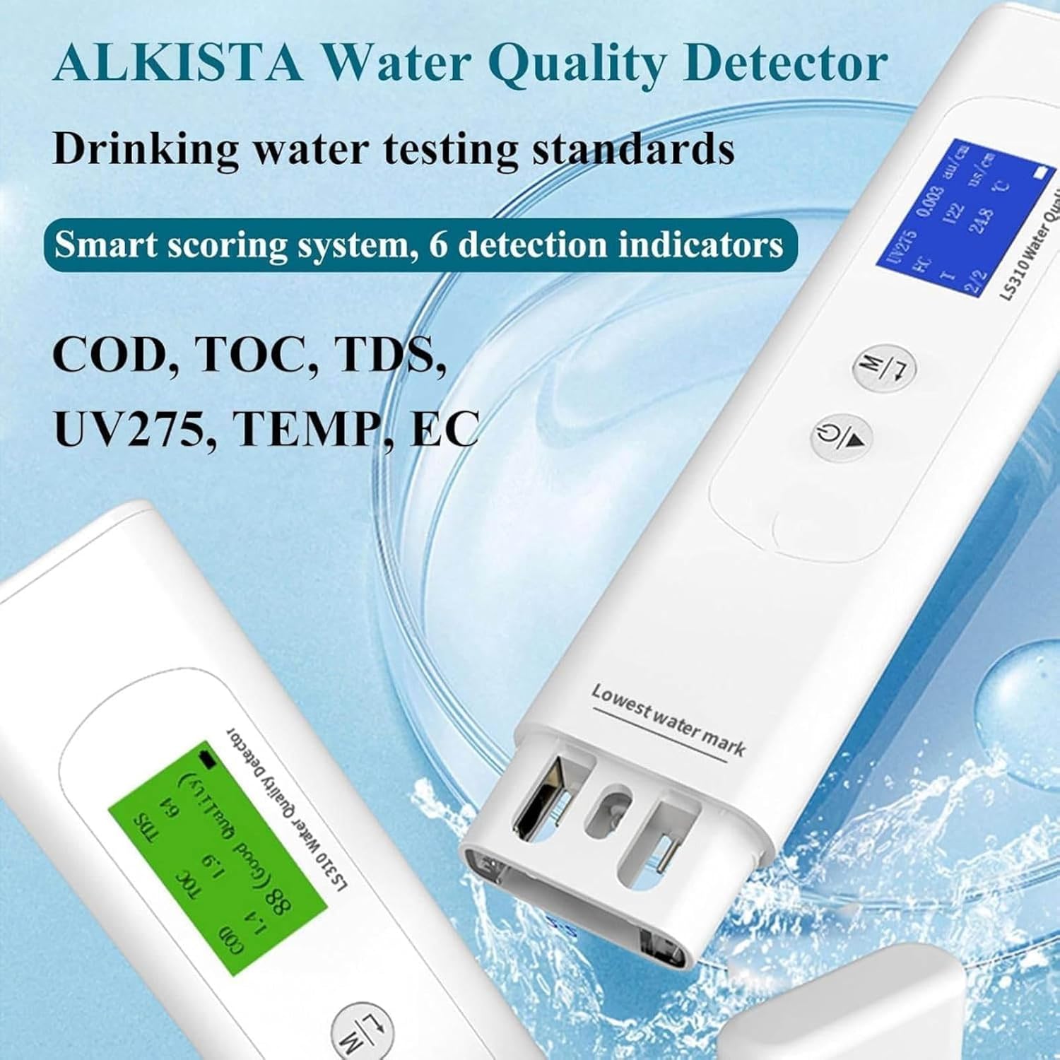 Objects to be tested: tap water, purified water, bottled water, groundwater, surface water (other than wastewater) and other daily drinking water.Test parameters: COD (chemical oxygen demand), TOC (total organic carbon), UV275 (ultraviolet absorption value), TDS (total dissolved solids), conductivity, temperature.Measuring range: COD (0-100mg/L), TOC (0-100mg/L), UV275 (0-1.0au/cm), TDS (0-2000ppm), conductivity (0-4000us/cm), temperature (0-50°C).Resolution: COD (0.01mg/L), TOC (0.01mg/L), UV275 (0.001au/cm), TDS (1ppm), Conductivity (1us/cm), Temperature (0.1°C)Measurement accuracy: DCO:0-5mg/L:±0.5mg/L; 5-100mg/L:±10%H, H is the standard value.COT:0-5mg/L:±0.5mg/L;5-100mg/L:±10%H,H is the standard UV275 value:0-0.1au/cm:±0.0lau/cm;0.1-1. 0au/cm:±10%H,H is the standard value TDS:0-100ppm:±5ppm;100-2000ppm:±5%H,H is the standard value Conductivity:0-200us/cm:±10us/cm;200-4000us/cm:±5%H,H is the standard value Temperature:± 2℃℃Display: 240*135, 1.14 inch TFT color screen.Power Method: 2 x #7 Alkaline BatteriesDimensions: 157 x 37 x 14 mm.Weight: about 68gTemperature measurement range: 5~50℃, 0~85%RH (non-condensing)Storage temperature range: -10~60℃, 0~85%RH (non-condensing)