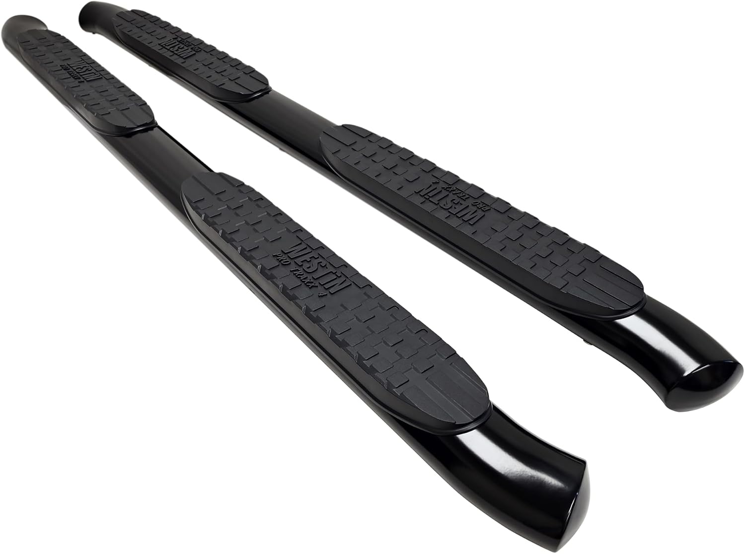 Westins Pro Traxx 4 Oval Nerf Step Bars feature a 4in. oval tube with a heavy-duty step pad that provides a wider and more secure step area. They feature 30 factory style bends that have seamless domed ends so there are no end-caps or exposed bolt heads. Applications are bolt-on installation.