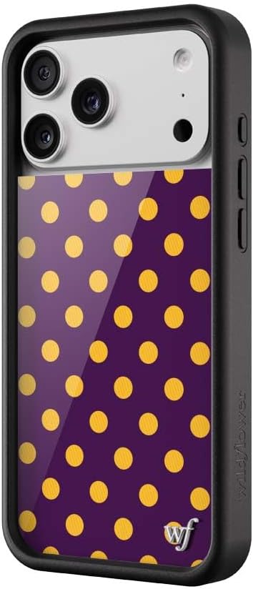 Wildflower Cases - Compatible with iPhone 17 Pro Max | Protective Black Bumper, 6.5ft Drop Test Certified, Women Owned Small Business | Trendy Classic Dotted Spots Cute | Polka Dot - Purple & Yellow