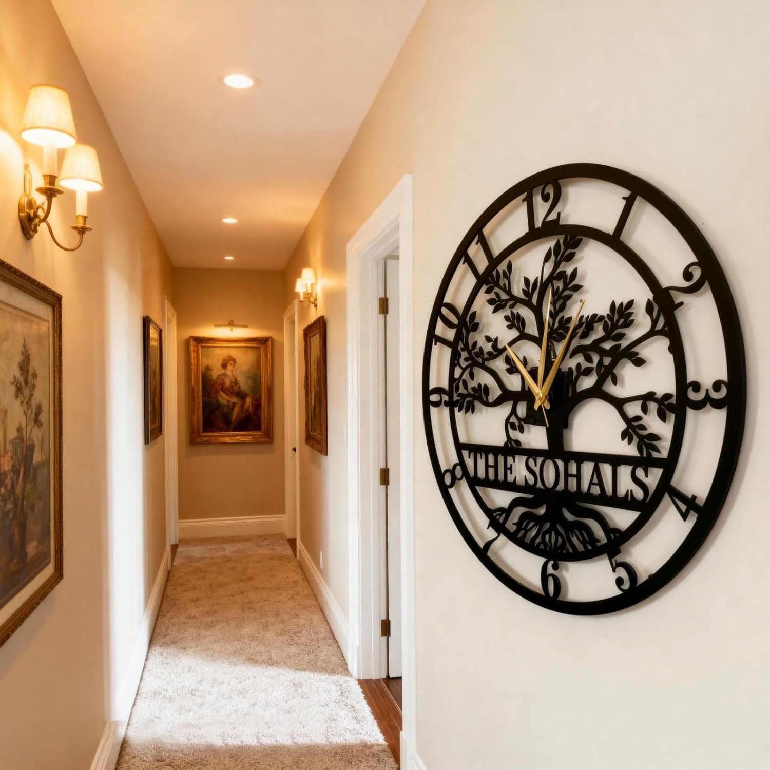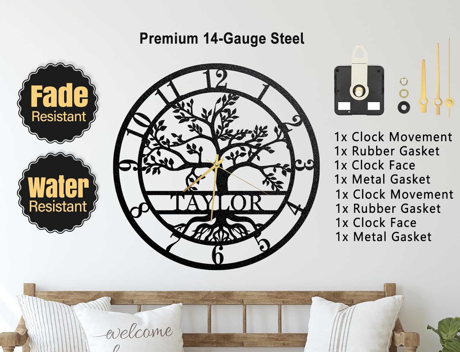 Personalized Metal Clock! Put it anywhere you like. Ordering is simple, click on ""Customize Now"" button, write yourcustom text, then pick favorite size. Our sizes range from 18 inches to 48 inches, with a total of five size standards for you to choose from. After the customization is completed, your personalized sign will start making design drawings. You can also contact us to check the effect.