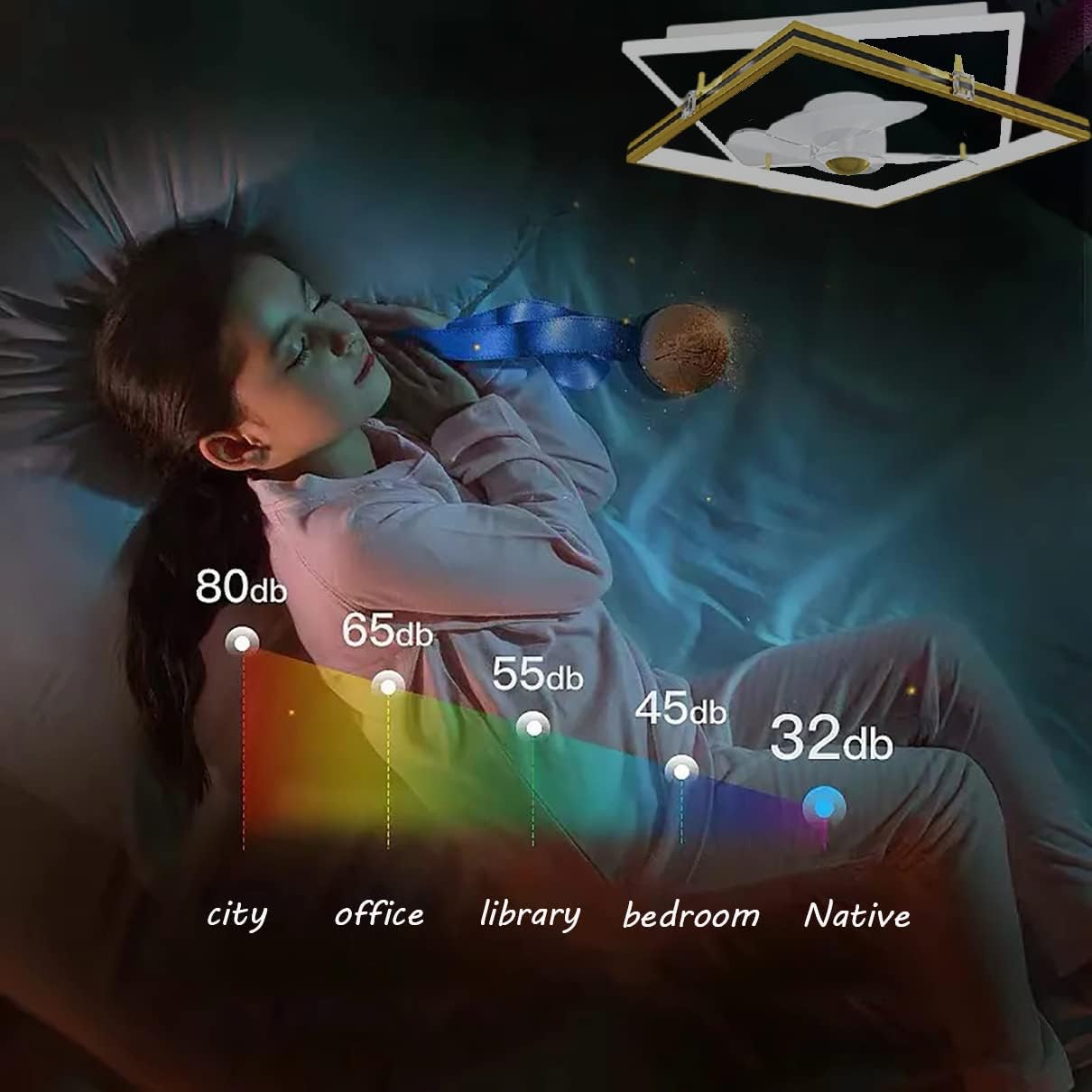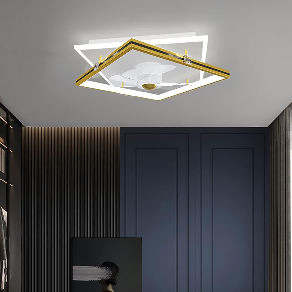 YUEGOO Ceiling Fans with Lamps,Bedroom Led Ceiling Fan with Light Quiet Dimmable 3 Speeds Fan Square Ceiling Light with Remote Control Modern Living Room