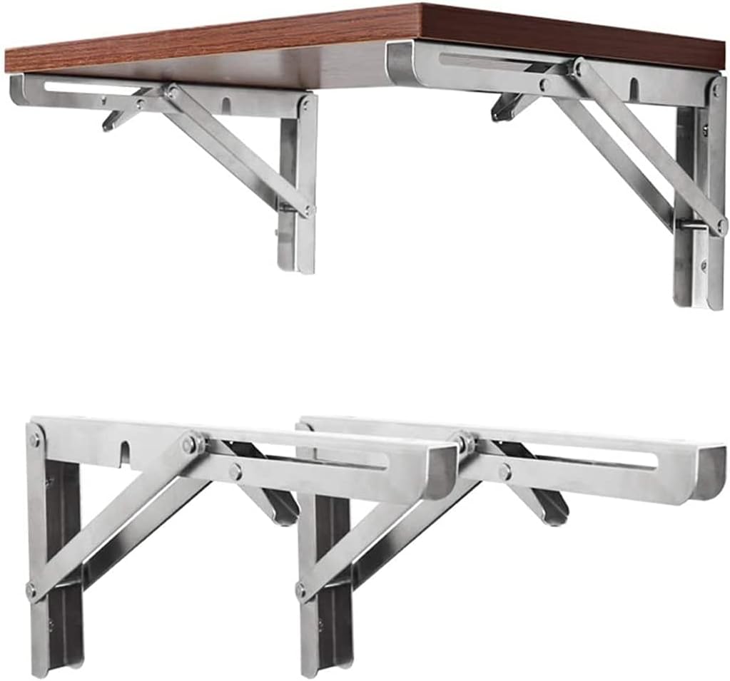 If you like DIY, this will be the perfect shopping experience, they will save your budget and meet your expectations...*product data:Name: Foldable bracketColor: WhiteHole: approximately 5mmMaterial: Stainless steelAngle Degree: 90 Degree*Package includes:2 x Triangular folding bracket ( Not including Board )+screw+expansion bolt