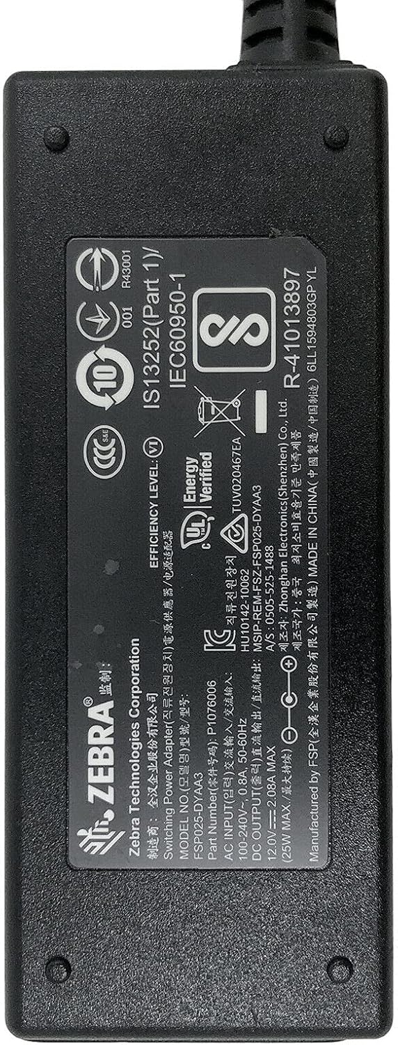 Zebra AC- DC Power Supply Adapter P1029871 12V 2.08A 25W. Comes with a Power Cord.