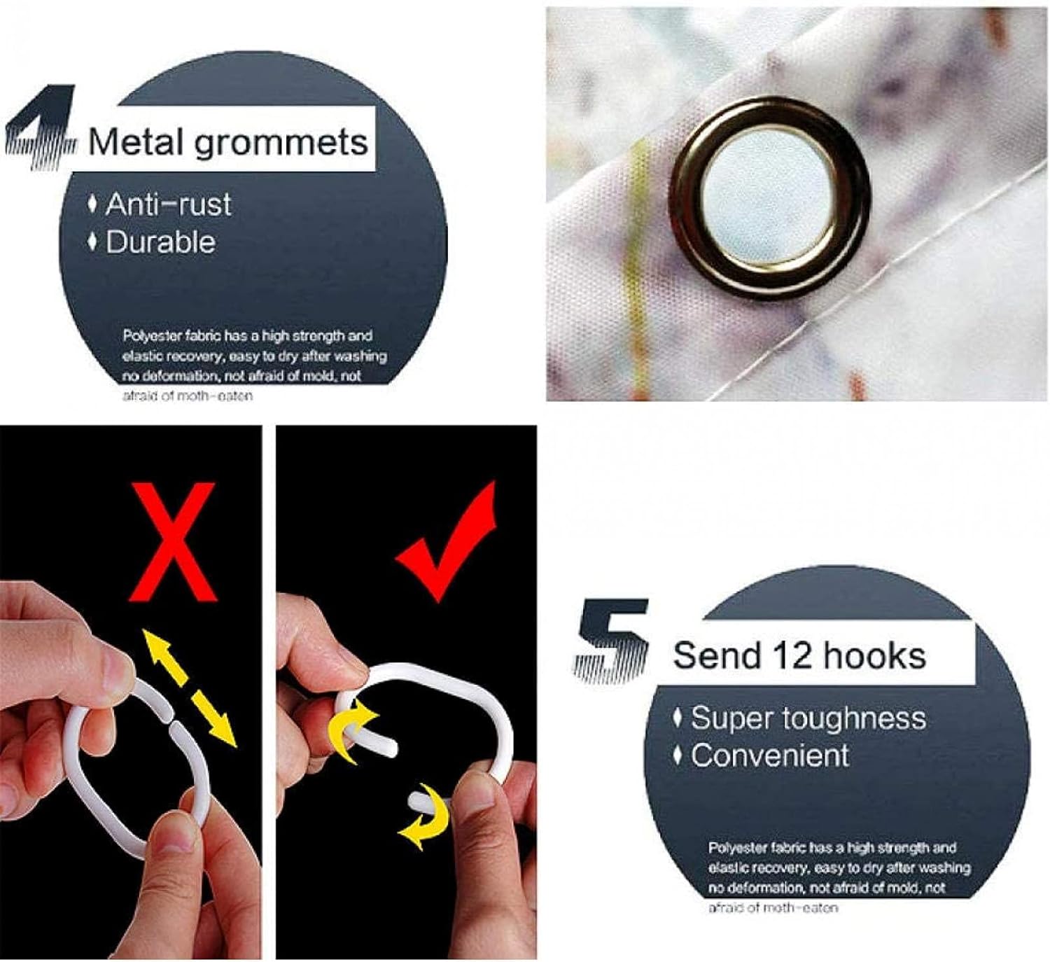 | Included Components | Bath Mat, Hook, Shower Curtain |
